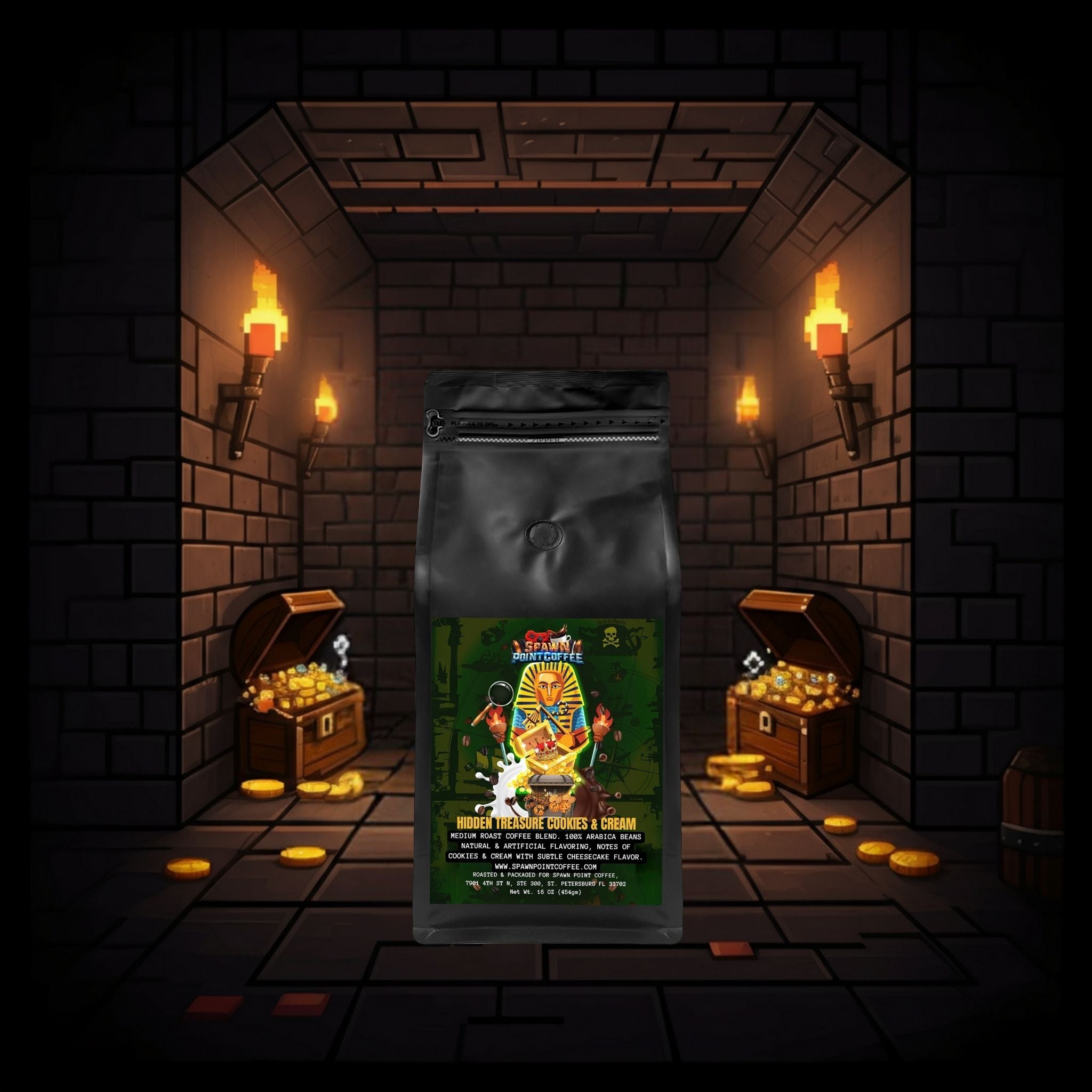 Congratulations, explorers! The hunt for your Hidden Treasure is finally over. Welcome to the delicious world of Cookies and Cream, now available in a cup of medium roast coffee. Let us take you on a journey filled with chocolatey flavor and sweet cream!