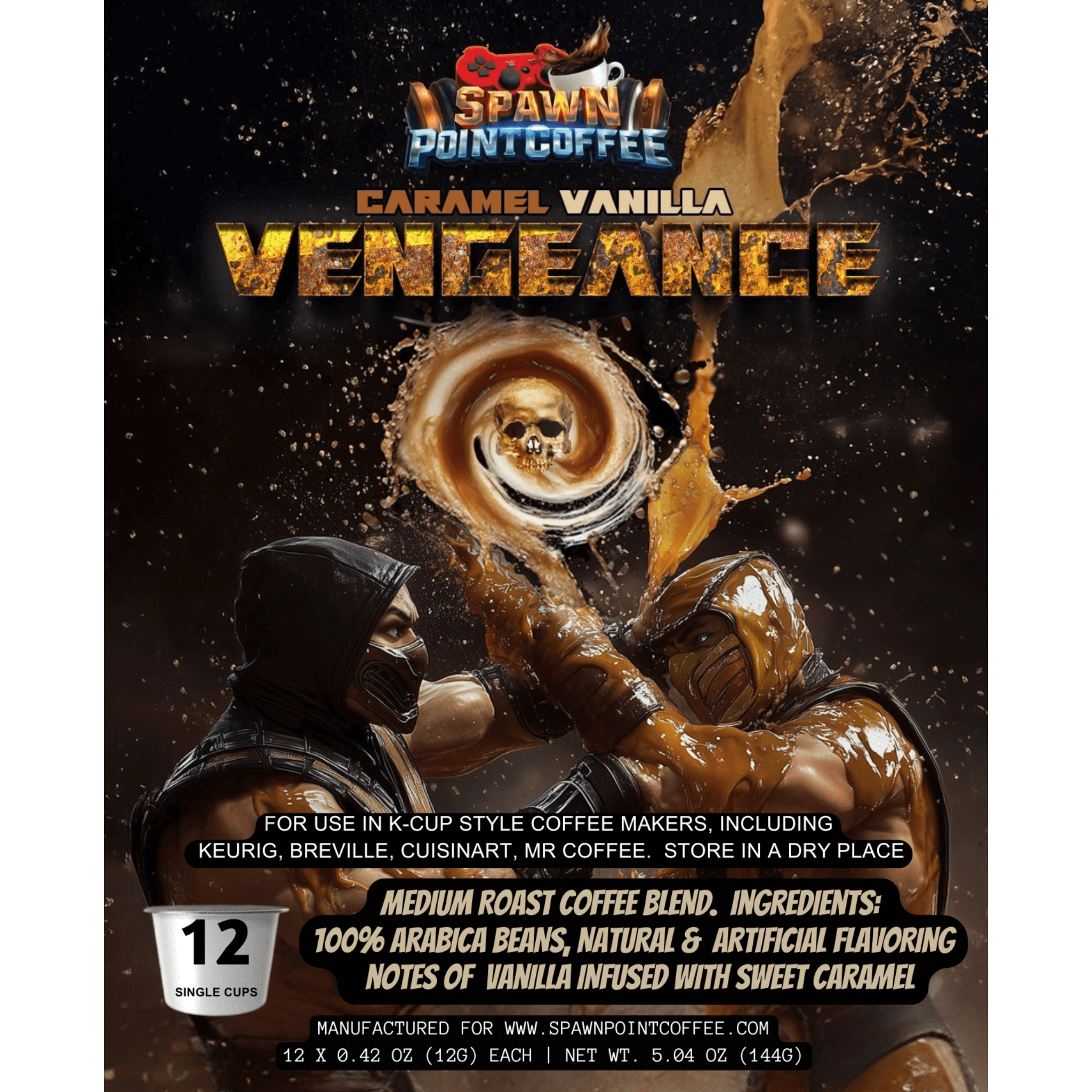 Prepare yourself, warrior—your mornings just got an epic upgrade. Inspired by the legendary Mortal Kombat saga, our Caramel Vanilla Vengeance Medium Roast is more than just coffee. Crafted for champions, this perfectly balanced blend of 100% Arabica beans delivers bold, smooth flavor with sweet hits of caramel and warm vanilla undertones. It’s the flawless victory your taste buds have been waiting for.