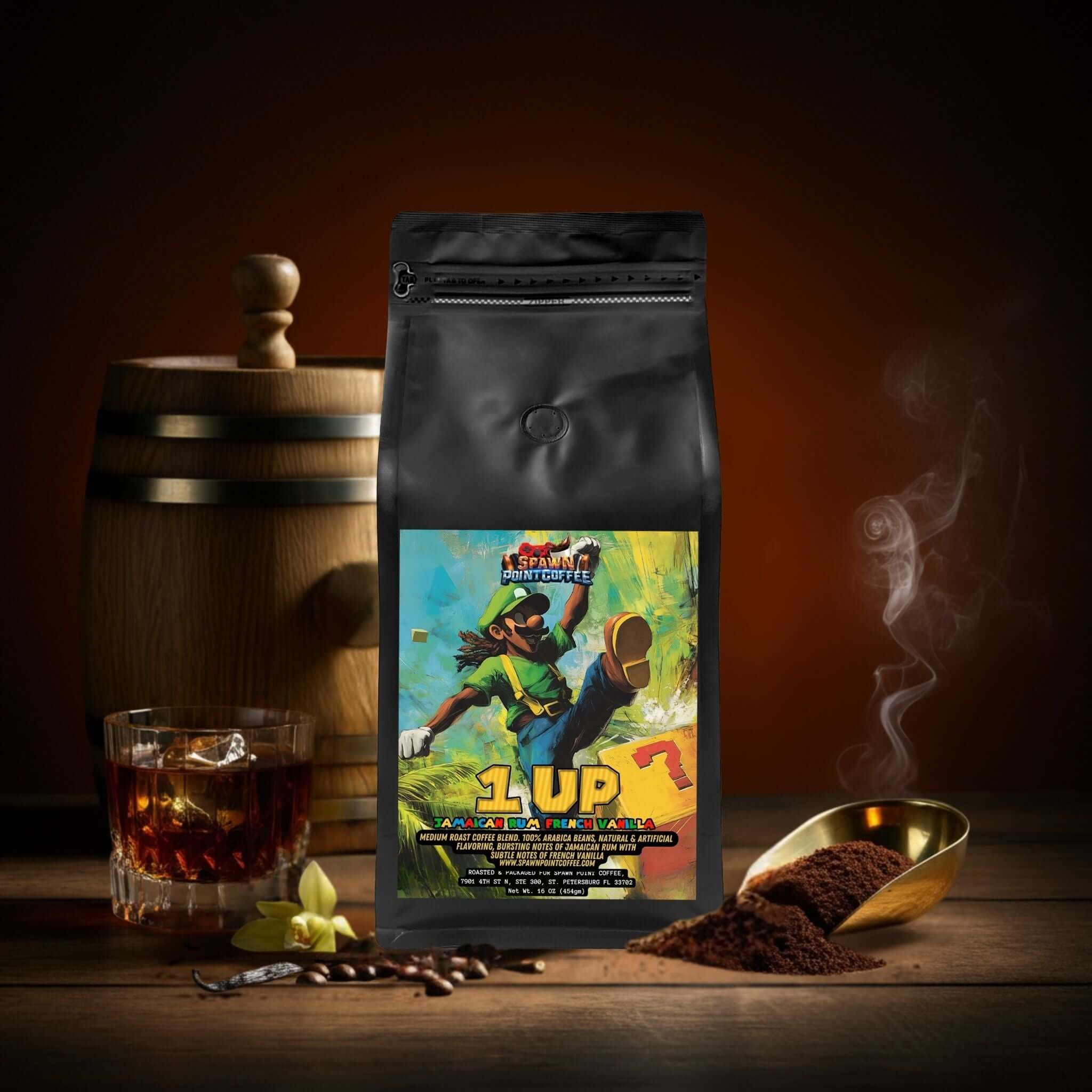 Level up your morning with 1 Up Jamaican Rum French Vanilla Coffee
