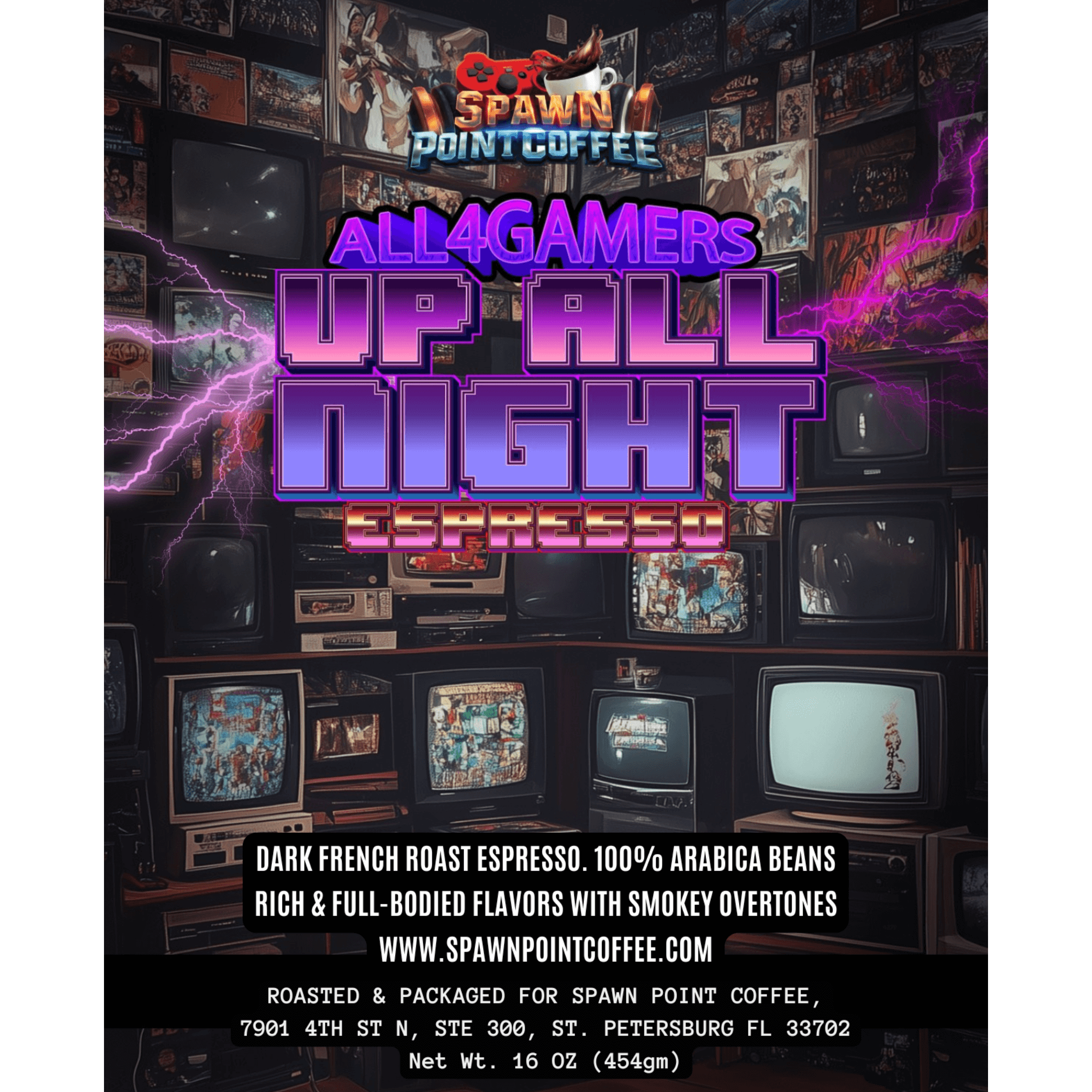 All 4 Gamers Up All Night Espresso | Decaffeinated French Roast Espresso | Whole Bean